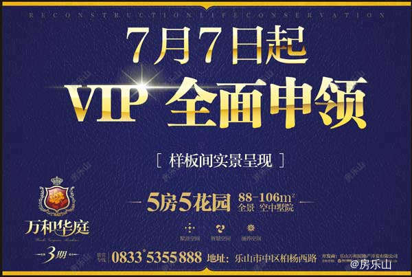 万和华庭三期5房5花园384席7月7日起开始VIP全面申领!