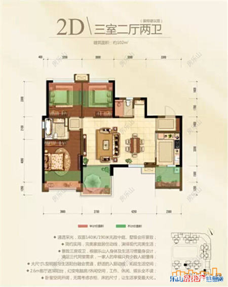 景致三房双卫,根据乐山人身体及生活习惯量身设计,满足三代同堂需求,一家人的幸福只有少数人懂得。