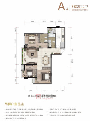 A33室2厅2卫2阳台 100.8m²(建面) -