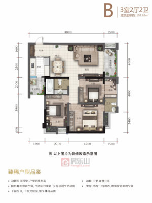 B3室2厅2卫2阳台 103.61m²(建面) -