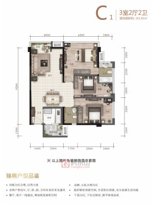 C13室2厅2卫2阳台 101.81m²(建面) -