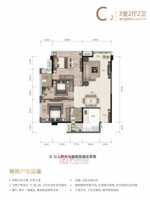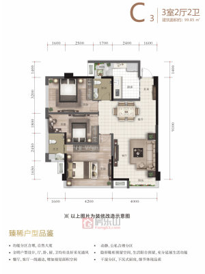 C33室2厅2卫2阳台 99.85m²(建面) -