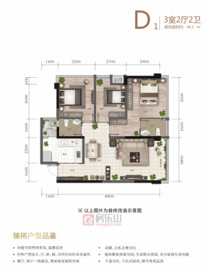 D23室2厅2卫2阳台 93.34m²(建面) -