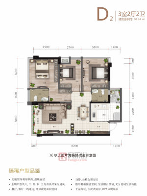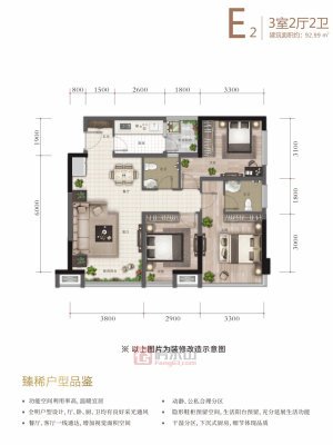 A63室2厅2卫2阳台 92.26m²(建面) -