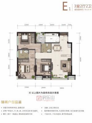 E13室2厅2卫2阳台 93.23m²(建面) -