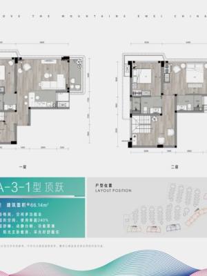 A3-1顶跃3室2厅3卫1阳台 66.14m²(建面) -