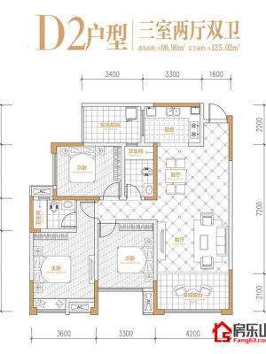 峨胜东城国际D23室2厅2卫1阳台 99.9m²(建面) -