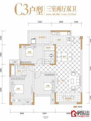 峨胜东城国际C2(二期)3室2厅2卫1阳台 94.93m²(建面)
