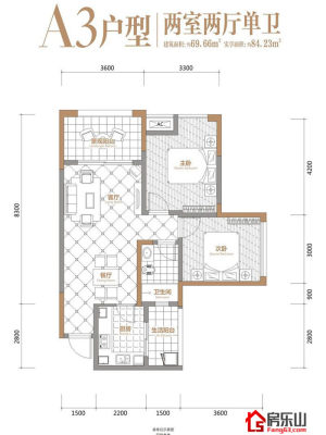 峨胜东城国际A3(一期)2室2厅1卫1阳台 69.66m²(建面) -