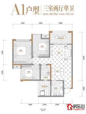 峨胜东城国际A1(一期)3室2厅1卫1阳台 80.09m²(建面) -