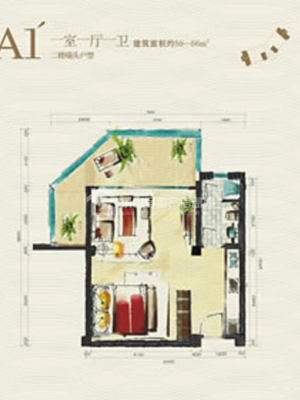 峨秀湖国际度假区A1'1室1厅1卫1阳台 56m²(建面) -