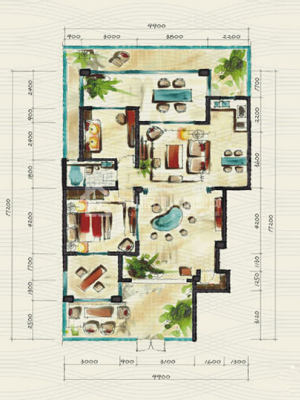 峨秀湖国际度假区B3'3室2厅1卫1阳台 92m²(建面) -