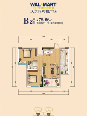 沃尔玛购物广场B22室2厅1卫1阳台 78.66m²(建面) -