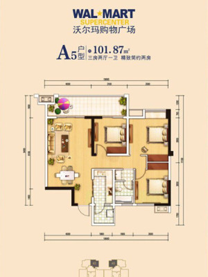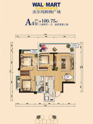 沃尔玛购物广场A43室2厅1卫2阳台 100.75m²(建面) -