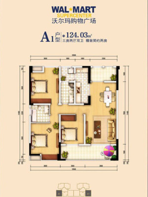 沃尔玛购物广场A13室2厅2卫2阳台 124.03m²(建面) -