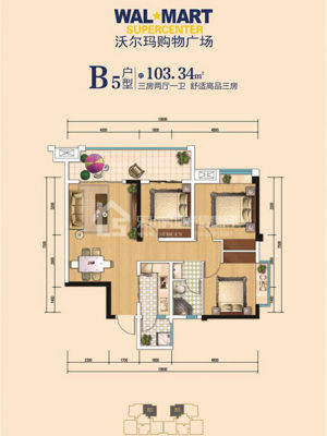 沃尔玛购物广场B53室2厅1卫2阳台 103.34m²(建面)