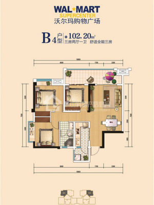 沃尔玛购物广场B53室2厅1卫2阳台 102.2m²(建面) -