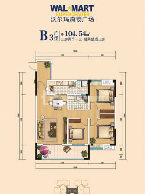 沃尔玛购物广场B33室2厅1卫2阳台 104.54m²(建面) -