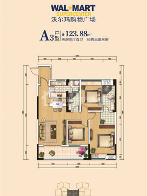 沃尔玛购物广场A33室2厅2卫2阳台 123.88m²(建面) -