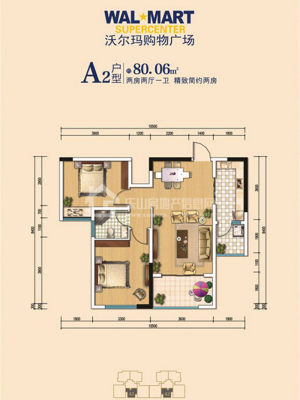 沃尔玛购物广场A22室2厅1卫2阳台 80.06m²(建面) -