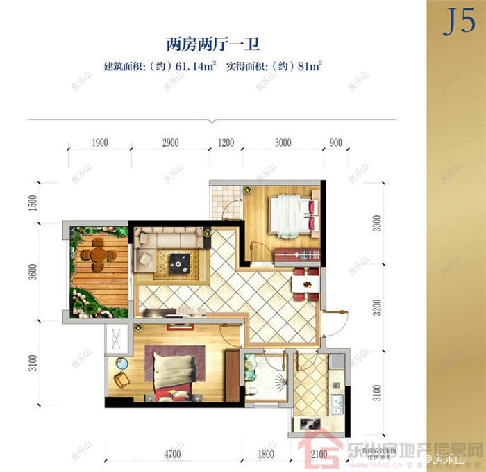 J5四期一批次户型61.14平米2室2厅1卫