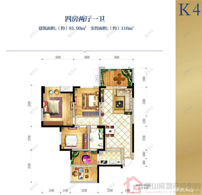 K4四期一批次户型81.9平米4室2厅1卫