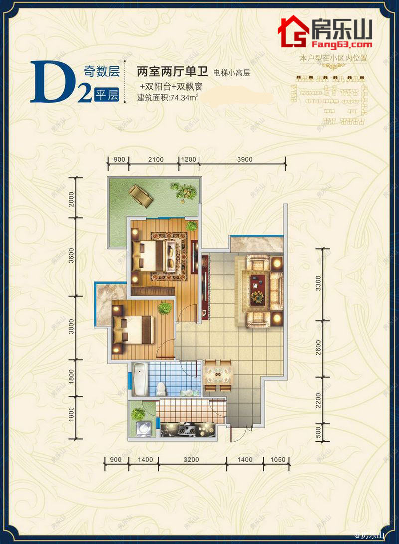 户型结构 2室2厅1卫2阳台