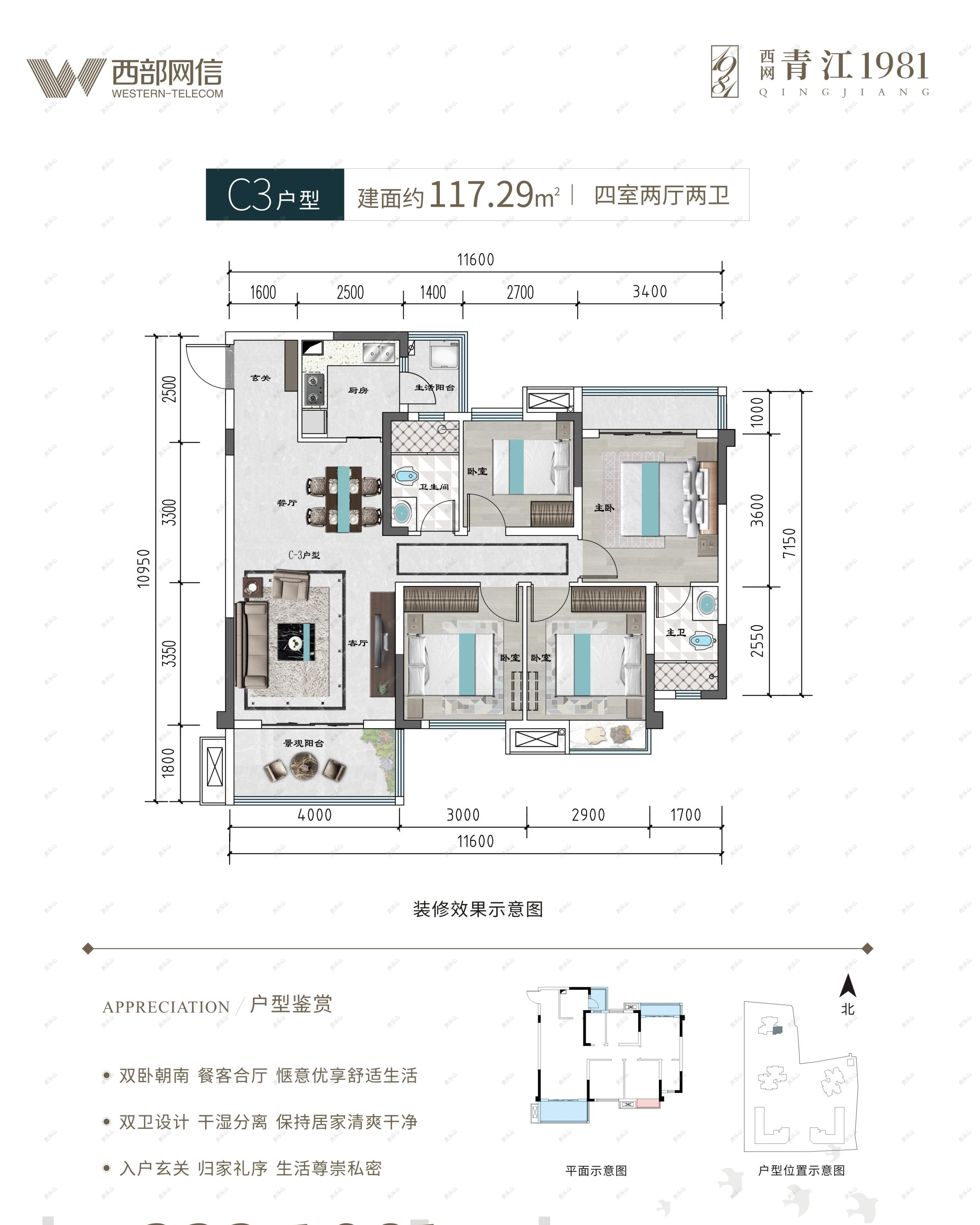 客厅和双卧室朝南,双卫设计,干湿分离,保持居家清爽干净,入户玄关,归家礼序,生活尊崇私密!