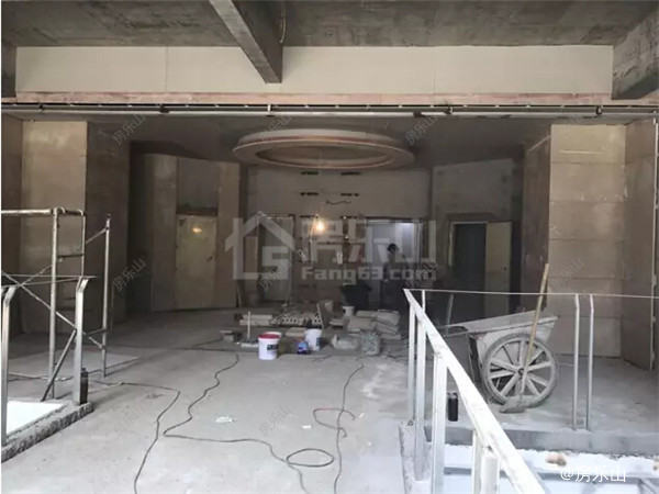 底层大厅装饰正在逐步完工,墙面石材已贴好
