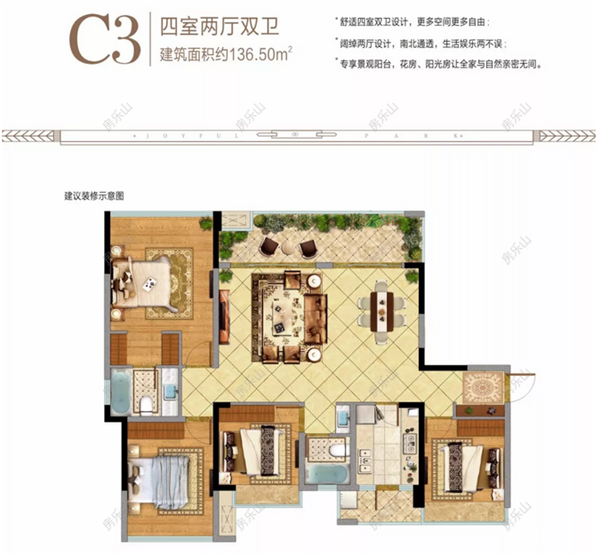 鎏金华C3户型,137.43平方米