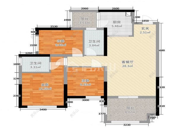 1、宽敞3室,户型方正无异形,阔绰的空间让你活动更自如!
