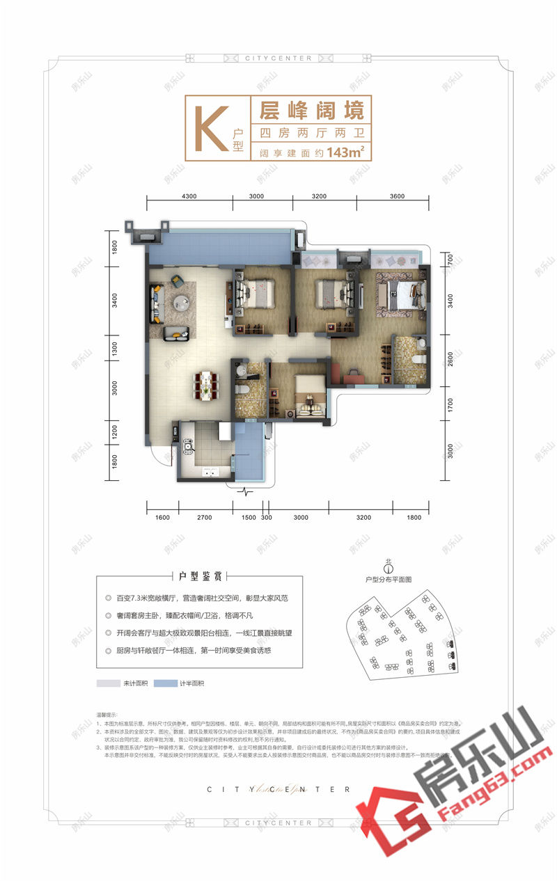 以繁花里建面约143㎡层峰阔境户型(点击查看户型图)为例,入目皆景的视野、宽景写意的四房户型,在新年为一步到位的置业理想助力。